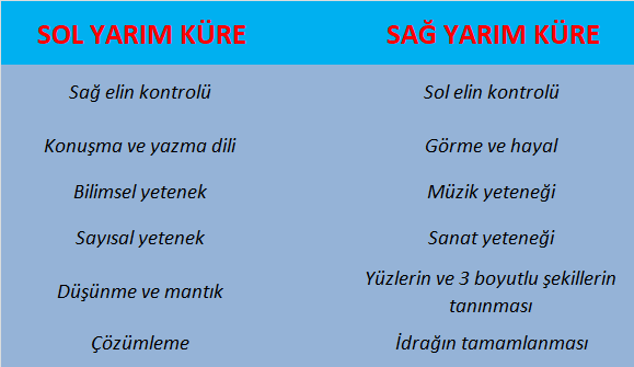 Sağ yarım küreden çıkanlar vücudun sol tarafına, sol yarımküreden çıkanlar vücudun sağ tarafına giderler.