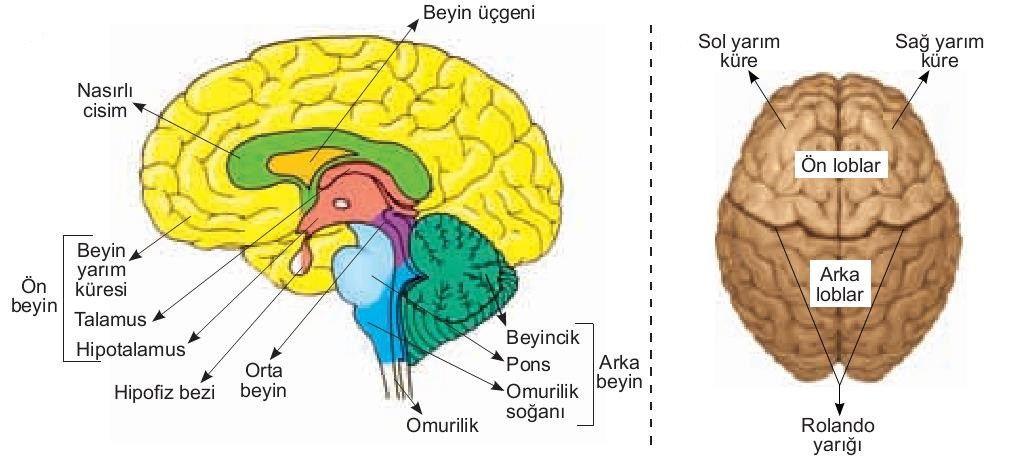 Uç ve ara beyin olmak üzere 2 temel parçadan oluşur.