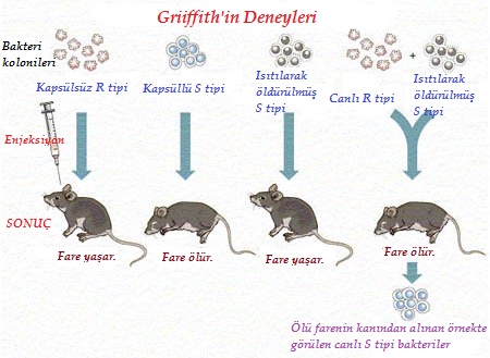 Griffith’in bu bakteri suşları ile yaptığı deneyler şöyle özetlenebilir.